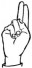 На ћирилици написано АЛЕН ДАБИЋ састоји се из 9 слова [?]. Исписано ћириличном једноручном азбуком за глувонеме: